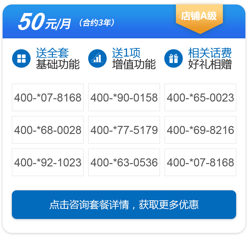 一个400号码可以绑定多部手机、座机,可供多客户同时打入,系统自动选择空闲线路接入,再也不会丢失任何一个商机。